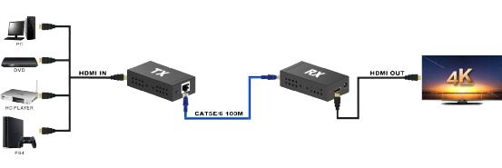 HDMI Over Single Cat5e/6(100M), 4K X 2K , Extender